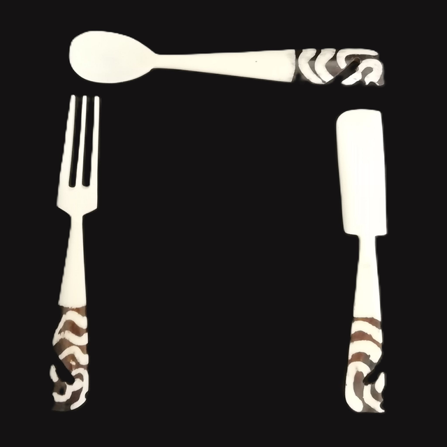Hand carved cutlery sets, comprise of a knife, folk and spoon.