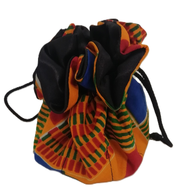 These lovely drawstring makeup bags, have small pockets inside to separate items. The drawstring allows them to open out so you can easily see the contents of your makeup bag. They are all unique, made with a variety of colourful African cloth. The makeup bag you receive may vary in colour from those photographed.